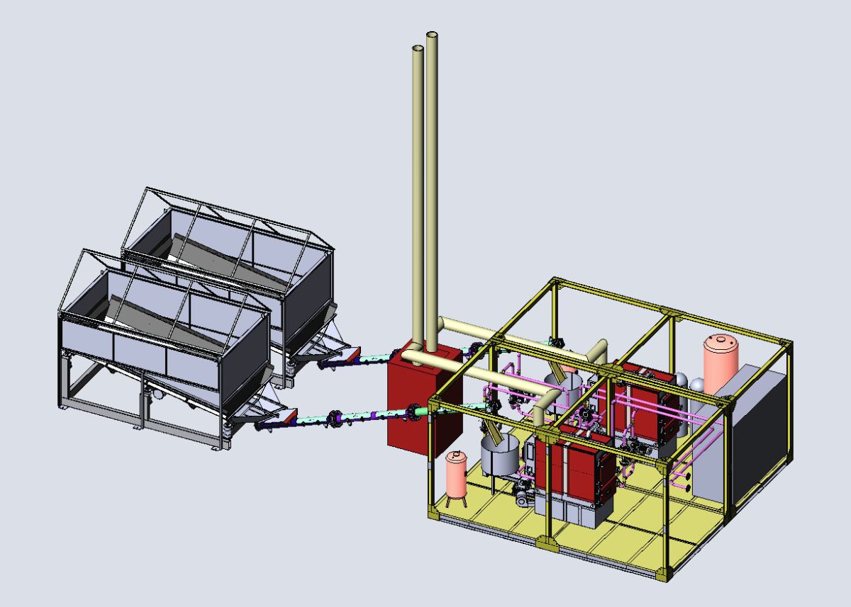 Компания УРАЛ ПЕЛЛЕТ поставляет БМК мощностью от 100 кВт до 10 МВт на базе одного или нескольких котлов на пеллетах/угле/брикетах и дровах.